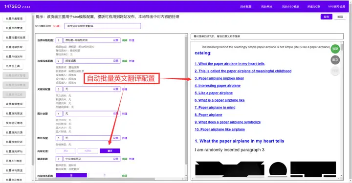 内容翻译设置:汇集世界上最好的几个翻译平台,让翻译的内容质量更上一层楼。翻译后不仅保留原文排版的格式,还不限制翻译字数,多样化的翻译可让文章成为一篇高质量的伪原创文章。